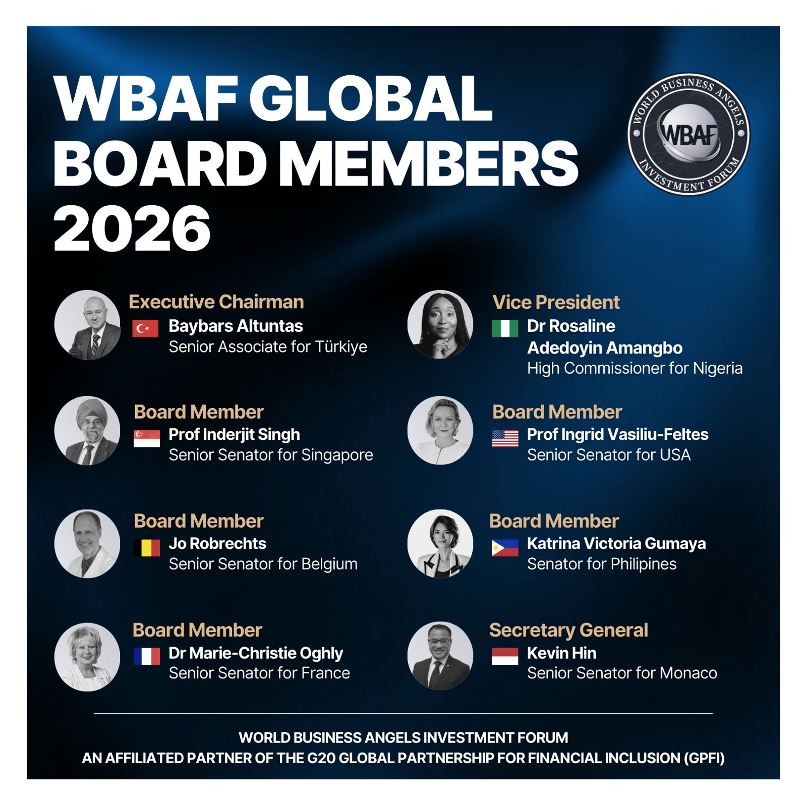 The 2026 Board reflects WBAF’s truly global character, with leaders from Europe, Asia, Africa, and the Americas, and reinforces the Forum’s mission to build a trusted, transparent, and inclusive global investment ecosystem for entrepreneurs and angel investors.